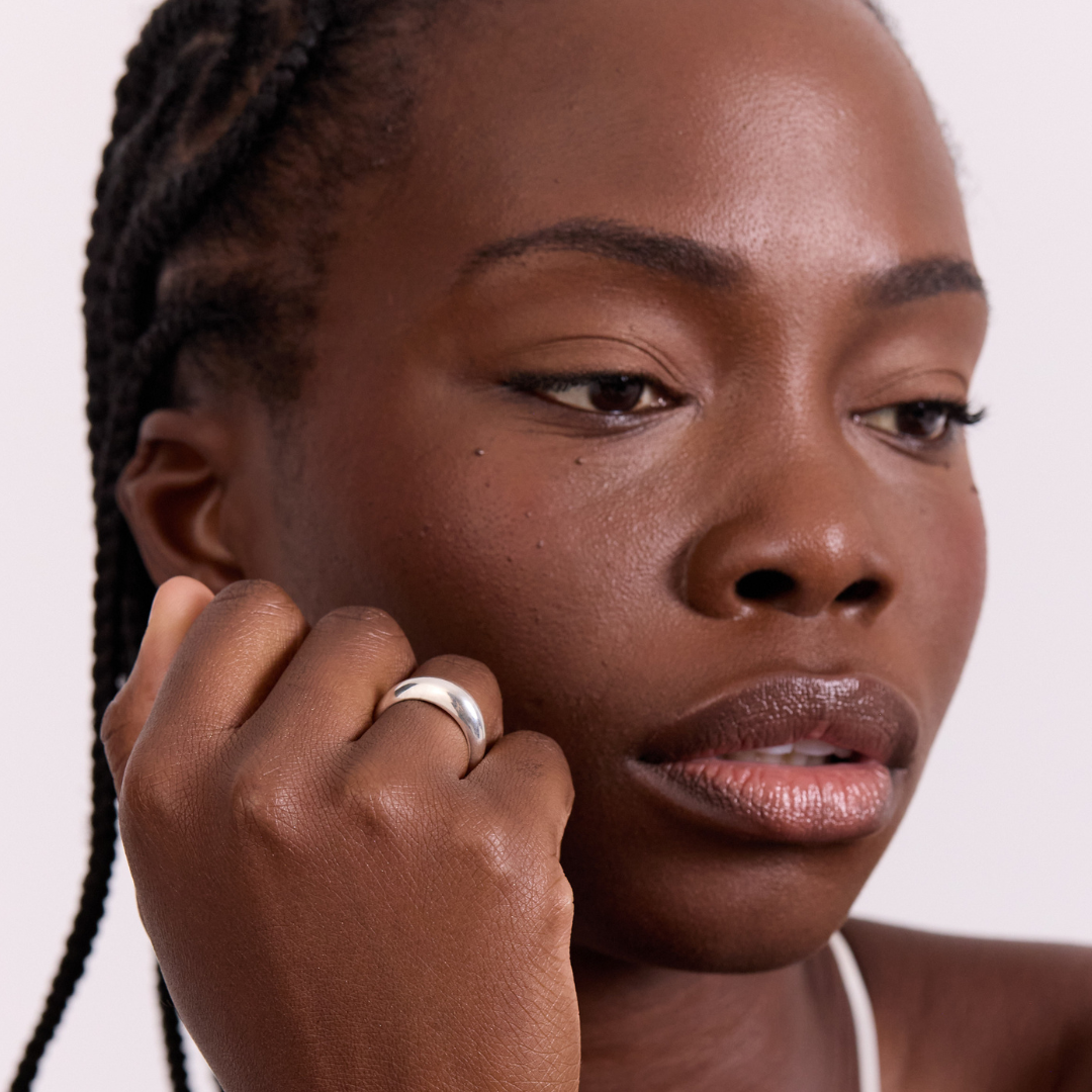 Crafted in solid Sterling Silver, the Fine Dome Ring offers a soft, domed silhouette that feels light and wearable, a quiet statement piece for your everyday rotation.
