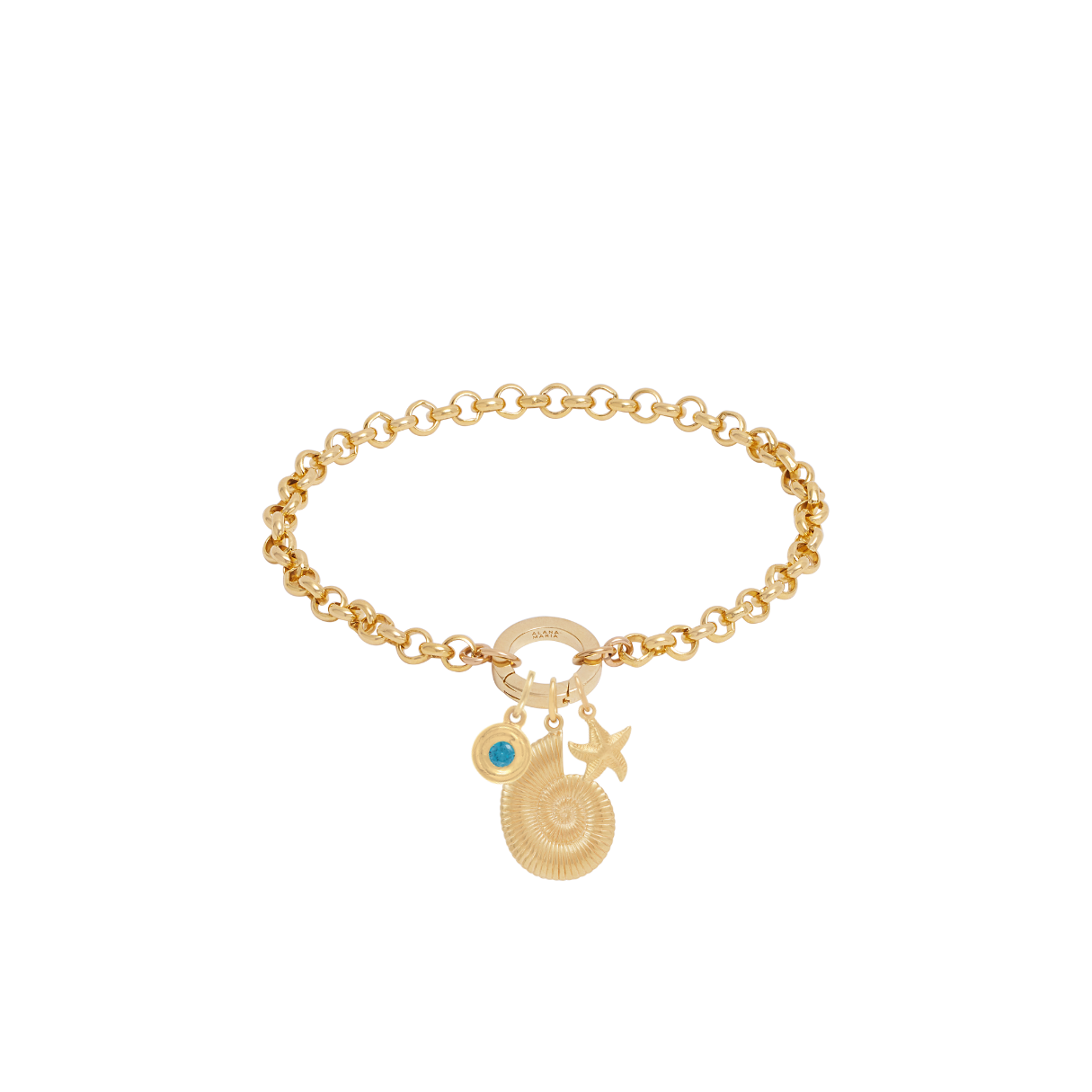 Belcher Charm Bracelet with Round Push Clasp - Gold