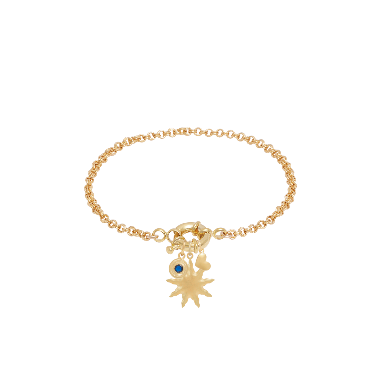 Double Link Rolo Charm Bracelet with Sailor Clasp - Gold