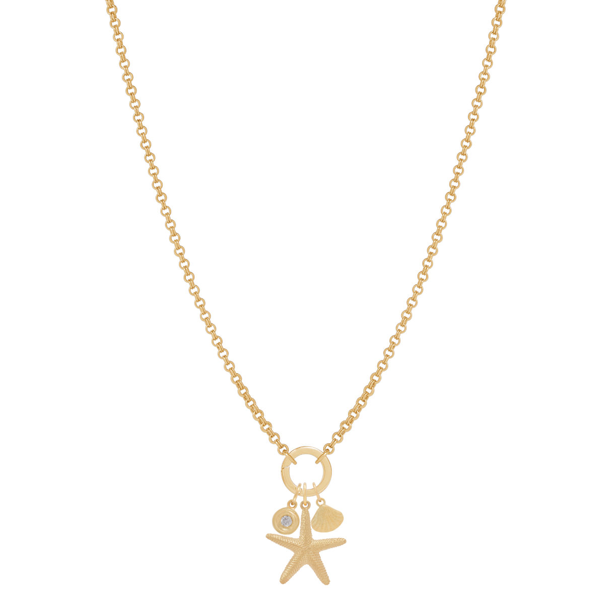 Double Link Rolo Charm Necklace with Round Clasp - Gold