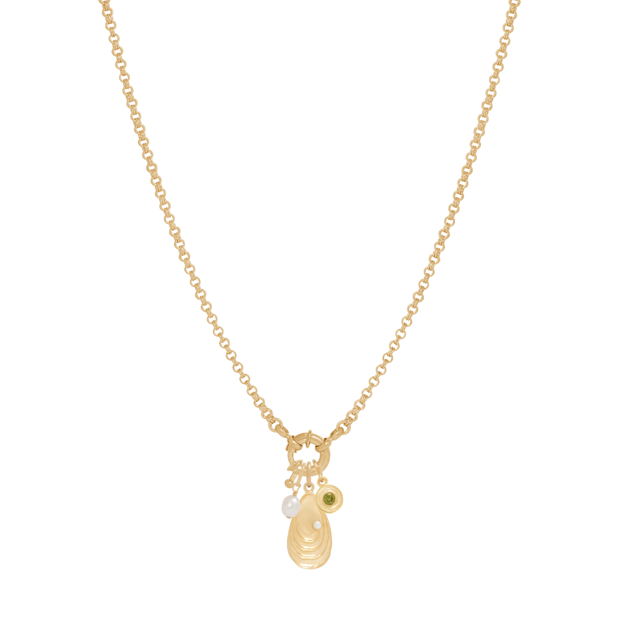 Double Link Rolo Charm Necklace with Sailor Clasp - Gold