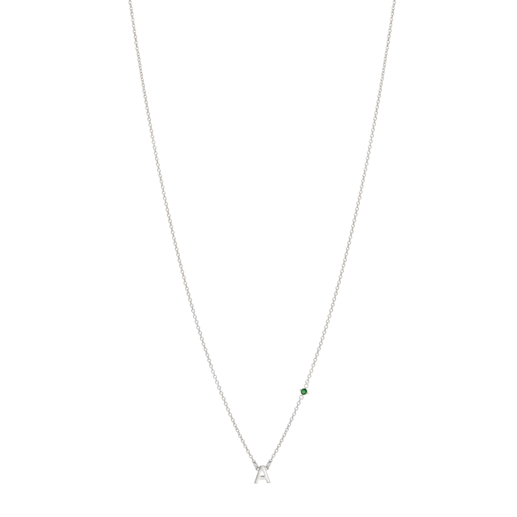 Shop a refreshed approach to personalisation with our Initial Necklace with Birthstone in Sterling Silver. Purposefully minimal, this chain design features a flat initial pendant and a coloured cubic zirconia, synthetic opal or freshwater pearl embedded in the chain. Perfect for everyday wear.
